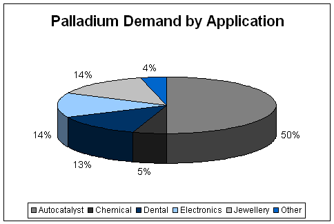 There is also a growing demand for palladium in the jewellery/retail goods industry. Demand in China alone, increased exponentially from 25,000 ounces in 2003, to reach a new high of