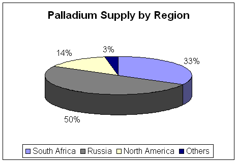 is also the second largest palladium supplier by region. Palladium production in 2004